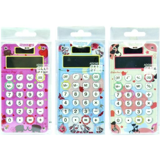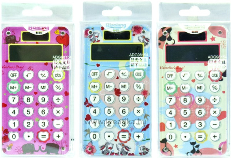 Zsebszámológép, mintákkal díszített előlap, szív alakú gombok, a hátoldalon pedig golyós labirintus játék található. 8 számjegyes LCD kijelzővel.