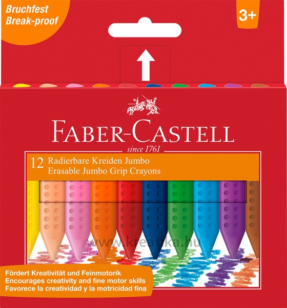 Zsírkréta, háromszögletű, vastag Faber-Castell "Jumbo Grip" 12 szín
