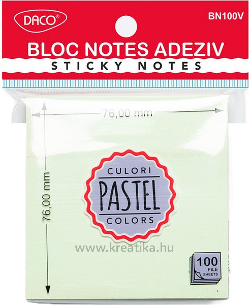 Öntapadó jegyzettömb 76x76 mm 100 lap Daco pasztell zöld