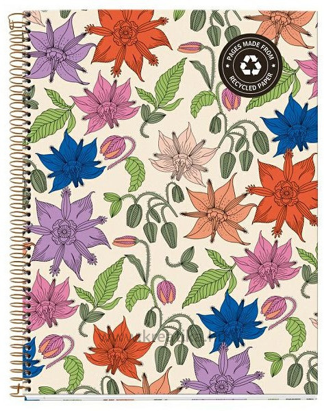 Spirálfüzet A/4 4x30 lapos, négyzetrácsos, újrahasznosított MQ "ECO" Vintage Lily