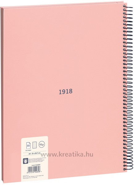 Spirálfüzet A/4 80 lapos, vonalas Milan "1918 Series" rózsaszín