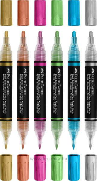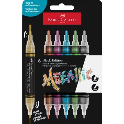 Akril marker készlet, kétvégű Faber-Castell "Black Edition" Shake&Paint 6 metál szín