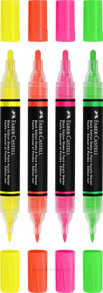 Akril marker készlet, kétvégű Faber-Castell "Black Edition" Shake&Paint 4 neon szín