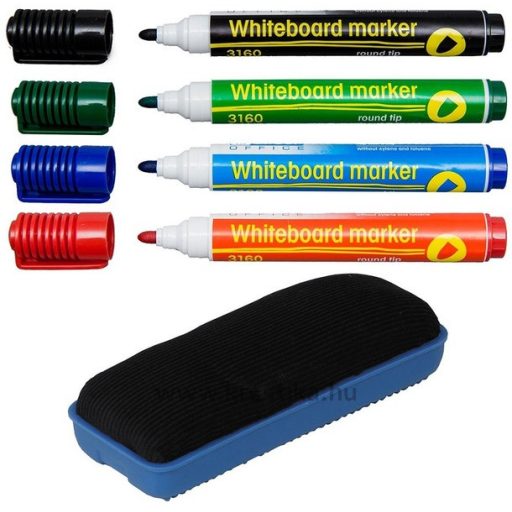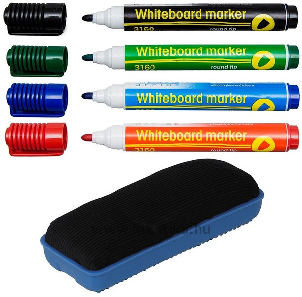 Szárazon törölhető táblafelületeken alkalmazható. Gömb csúcs 3 mm-es vonalvastagság. Gyorsan száradó, szagtalan, vízbázisú, könnyedén letörölhető tinta. 4 db-os készlet.