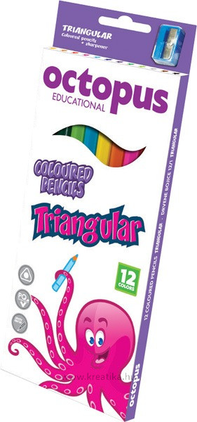 Színesceruza készlet háromszög test, ajándék hegyezővel, Octopus 12 szín