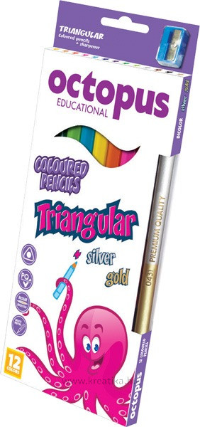 Színesceruza készlet háromszög test, ajándék hegyező Octopus 12 szín