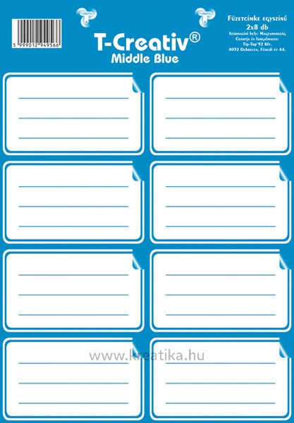 Füzetcímke, keretes és akasztós 2 ív/csomag T-Creativ "Middle Blue