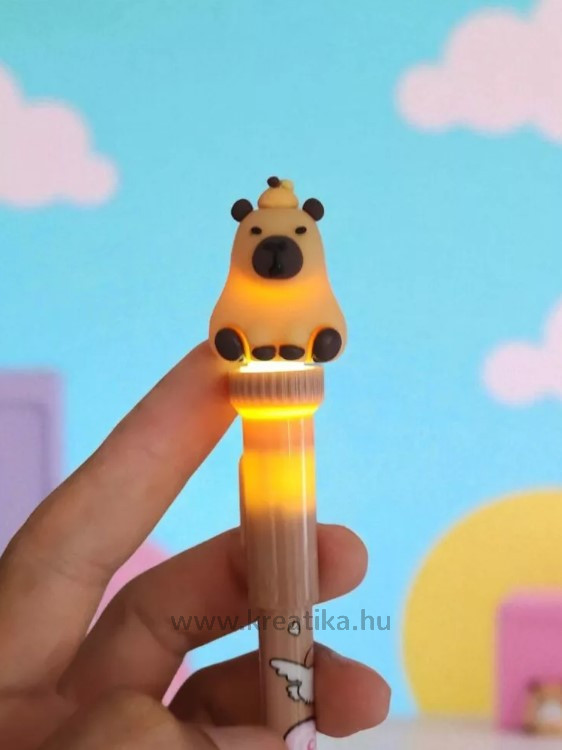 A toll testén található kedves capybara díszítés minden alkalommal mosolyt csal az arcokra, a világító funkció pedig egyedi hangulatot teremt, így még a sötétebb környezetben is különleges élmény az írás.